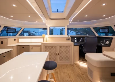 Luxurious and accommodating, the exclusive Knysna 550 is superior craftsmanship at its finest. The 550SL model provides an exclusive sky lounge for leisure while cruising the vast ocean. Whereas the 550SE offers more space for extra solar panels and various other optional accessories for global sailing endeavors. The 550 offers the thrill of high-performance sailing at an entirely new level of comfort.